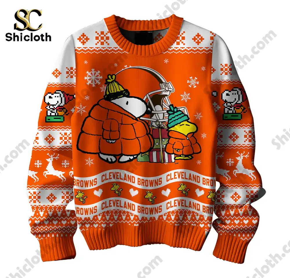Overview Of Cleveland Browns x Peanuts Snoopy Ugly Sweater