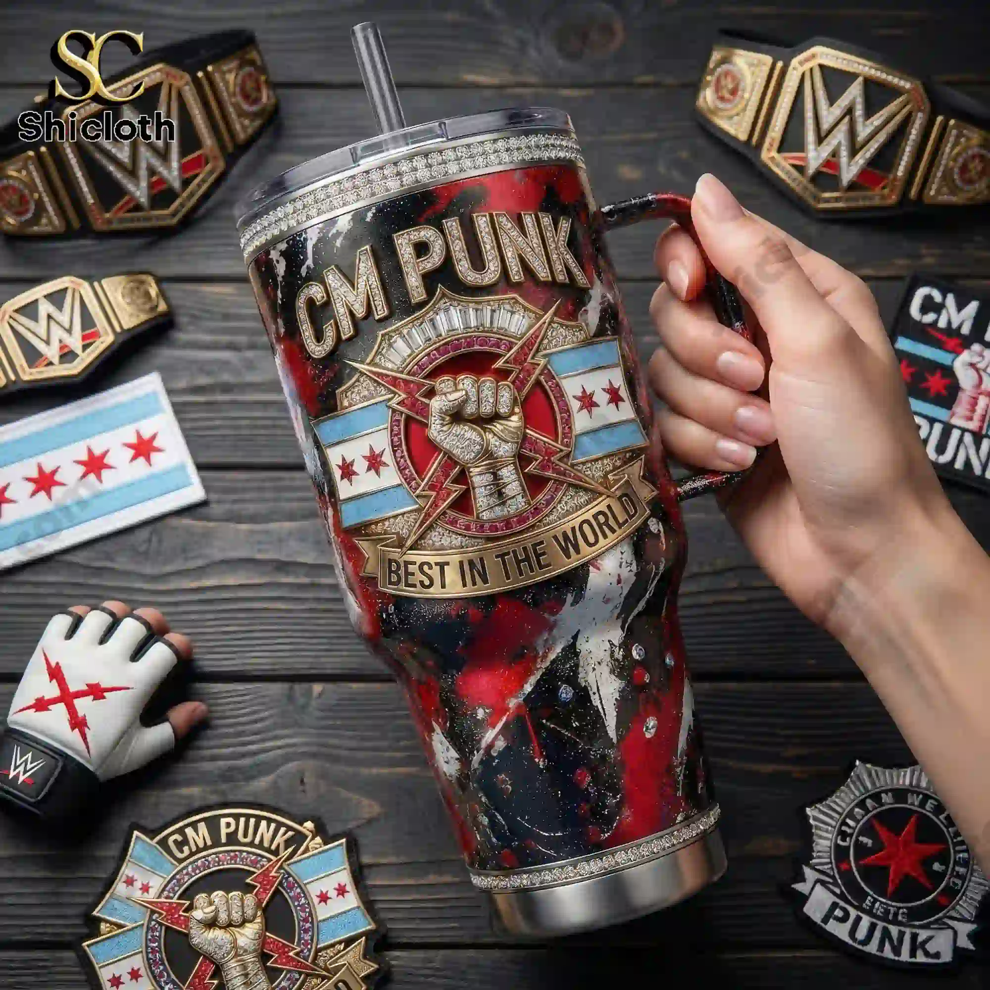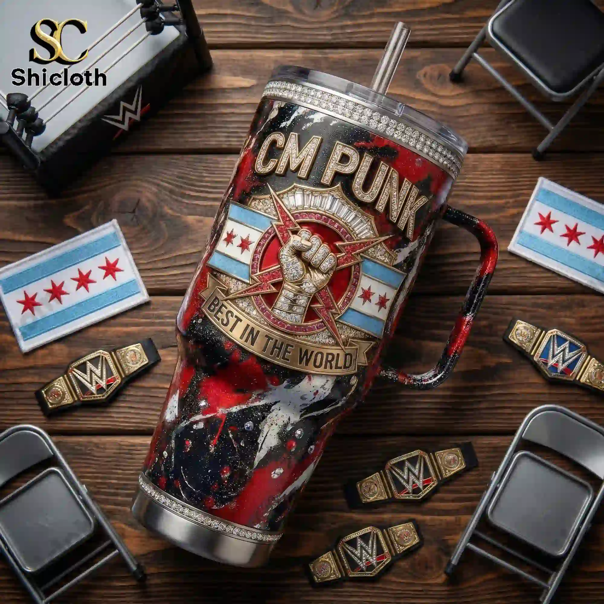Product Information: CM Punk Best in the World 40oz Tumbler With Handle
