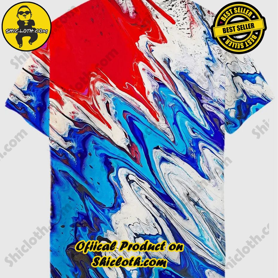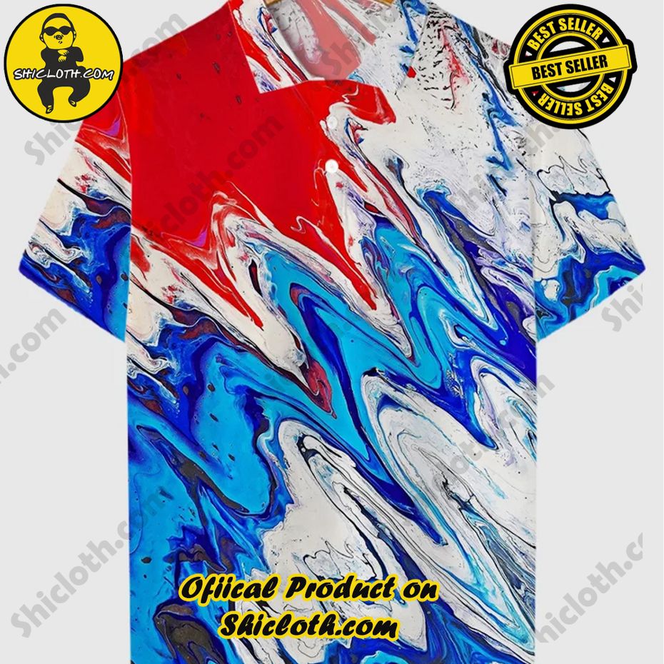 Colorful Red Blue And White Marble Texture Printing Short Sleeve Polo