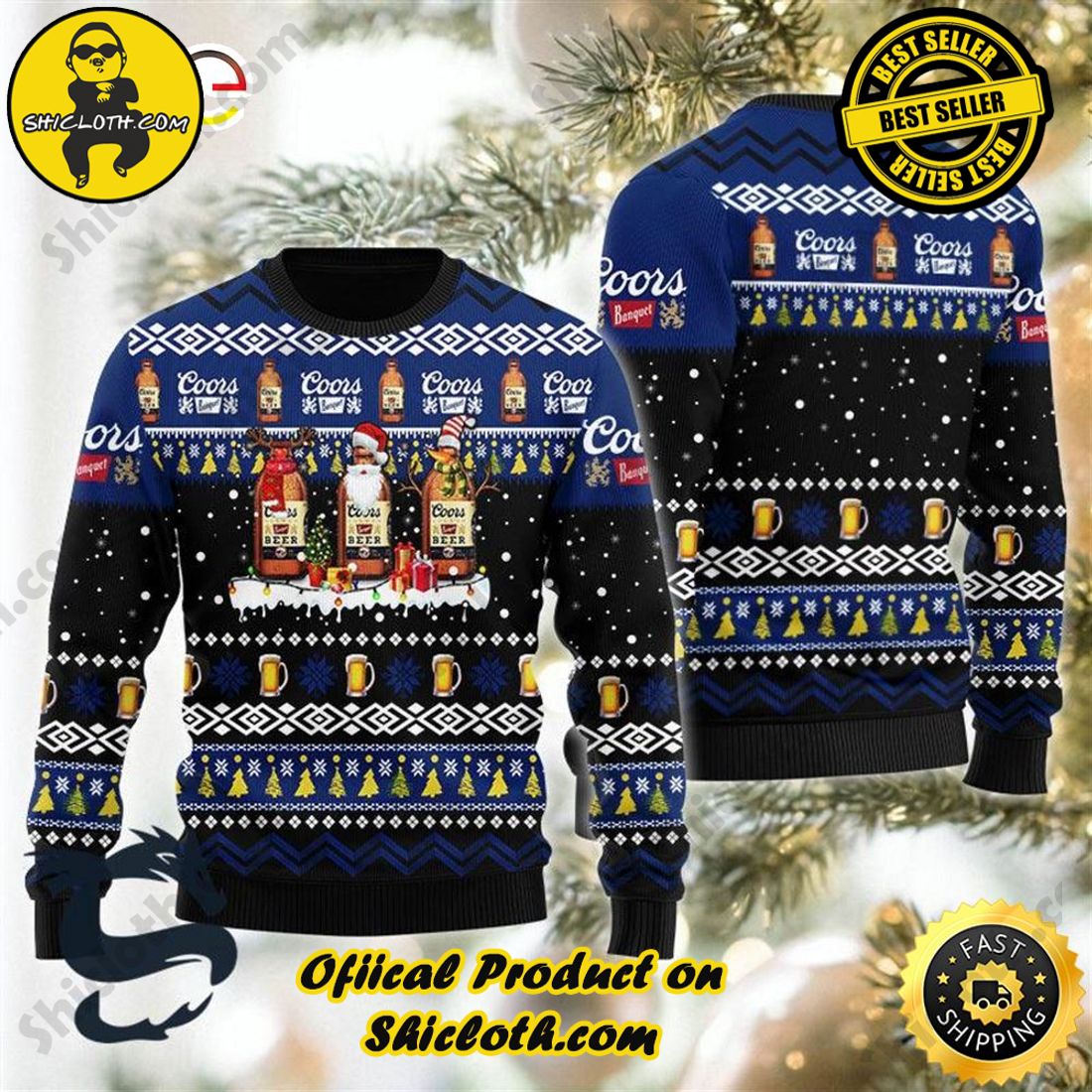 Coors Banquet Santa Reindeer Snowflake Christmas Beer Sweater