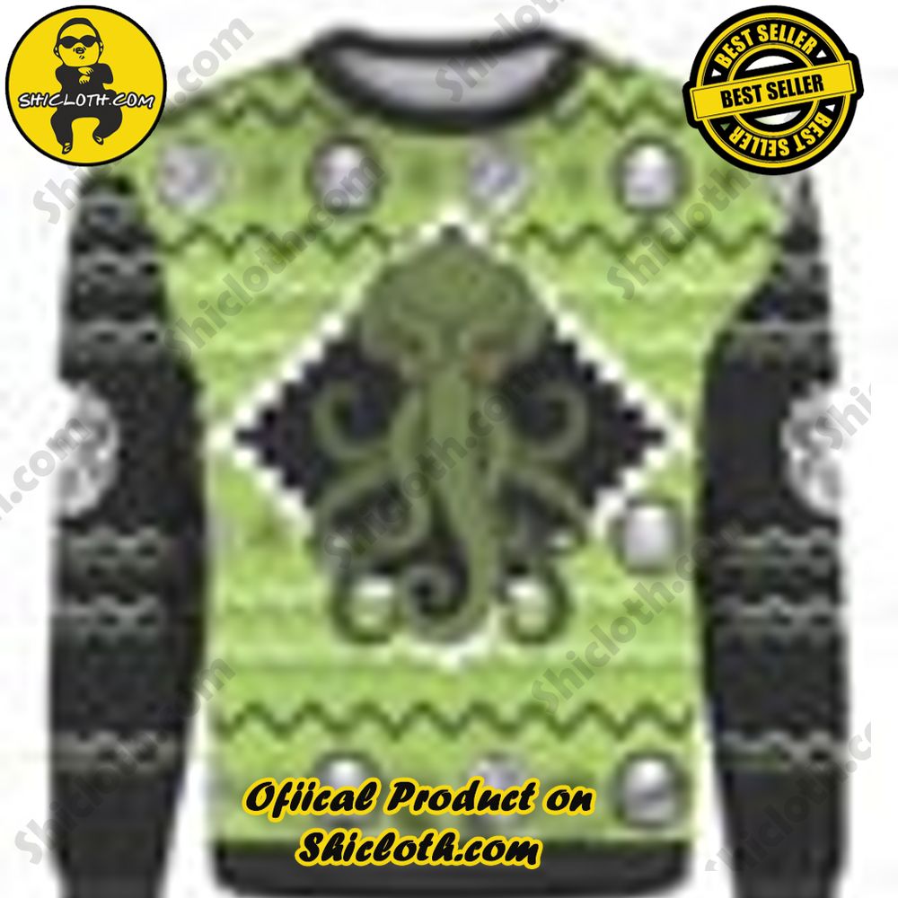 Introducing the Cthulhu Christmas Ugly Sweater, the perfect blend of holiday cheer and Lovecraftian horror! Embrace the holiday season in style with this unique and eye-catching sweater that showcases the iconic Cthulhu creature in a festive setting.