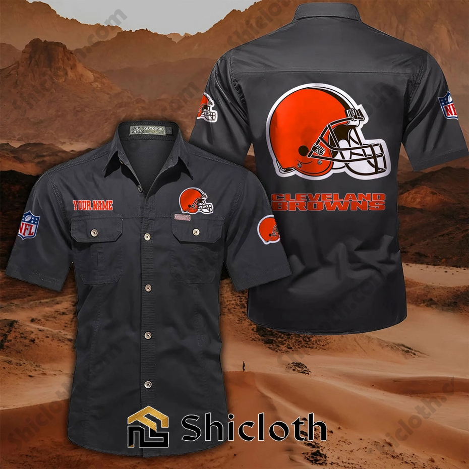 Show your unwavering Browns pride with the custom name Cleveland Browns Cargo Shirt! Made right here in the USA with durable, high-quality materials, this shirt is built to last through every game day and beyond. Featuring the iconic Browns colors and logo, this cargo shirt is more than just apparel; it’s a statement. The rugged design boasts multiple functional pockets, perfect for keeping your essentials close while you cheer on your team. But the best part? You can personalize it with your own name, creating a unique and truly one-of-a-kind piece of Browns memorabilia. Wear your name with pride and let everyone know you’re a dedicated member of the Dawg Pound. Show your love for the Cleveland Browns, support American manufacturing, and enjoy practical style, all in one awesome shirt! We’re excited to bring this piece of Cleveland to Browns fans all over the world, with worldwide shipping available! Order yours today and represent your team like never before!