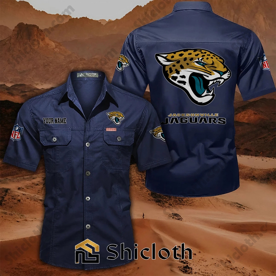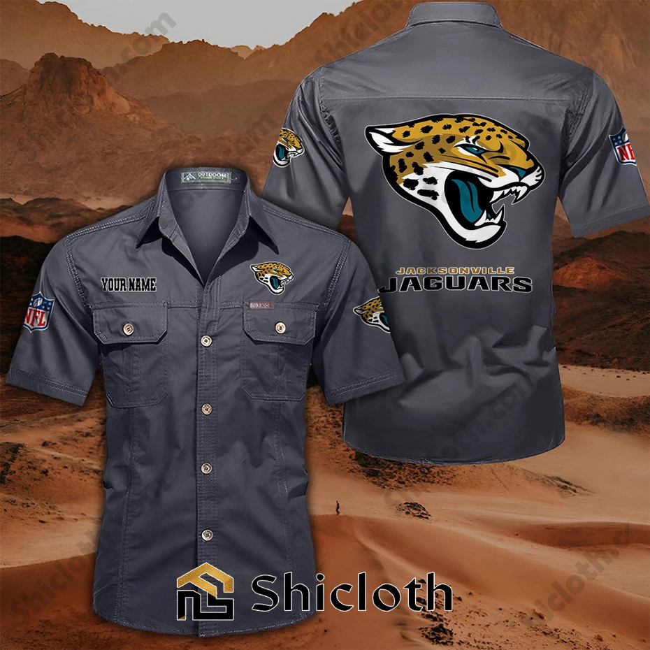 Show your Jacksonville Jaguars pride in a whole new way with our custom name Cargo Shirt! Crafted with durable, high-quality materials, this unique shirt blends team spirit with everyday functionality. Imagine sporting the classic Jaguars logo alongside your own name or a personalized message, making it a truly one-of-a-kind piece. Perfect for game days, tailgates, or casual outings, this cargo shirt features multiple pockets for securely carrying your essentials – phone, keys, wallet, all within easy reach.