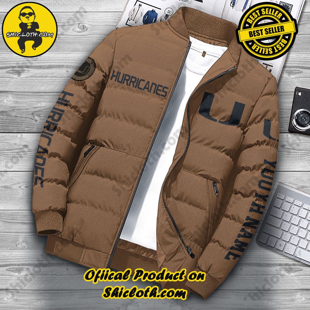 Product Information : Custom Name NCAA Miami Hurricanes Personalized Puffer Jacket