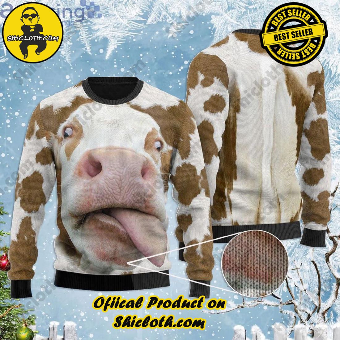 Don’t miss out on this must-have holiday fashion statement! Order your Cute Cow Face Print Ugly Christmas Sweater today and experience the perfect blend of affordability, quality, and festive style.