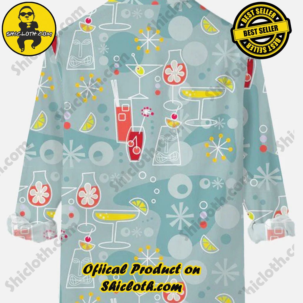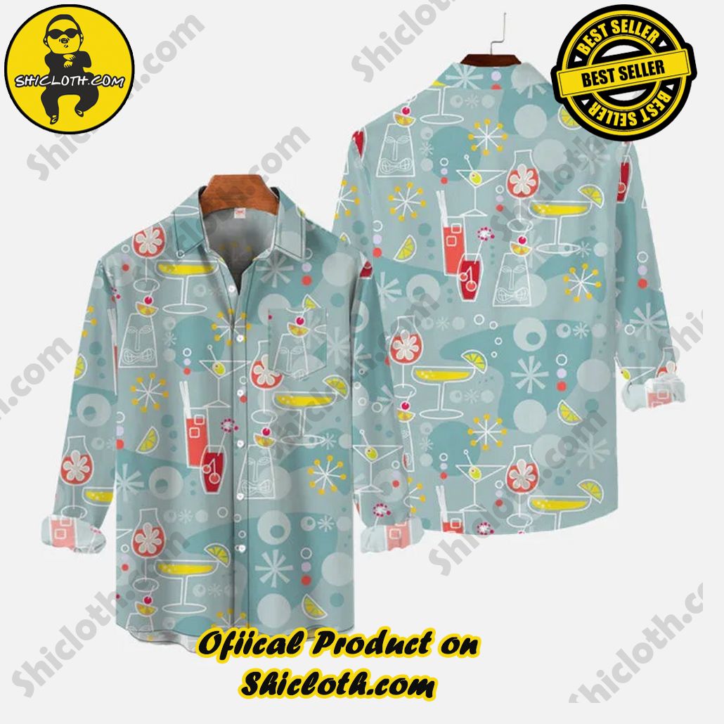 Product Information : Cyan Medieval Atomic Geometric Style Various Wine Glasses Printing Breast Pocket Long Sleeve Shirt