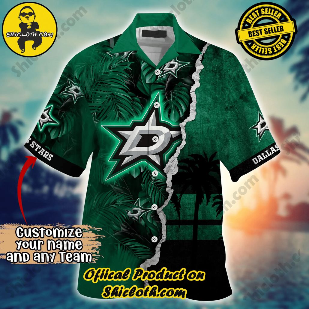 Unleash your inner hockey fan with our exclusive Dallas Stars NHL Hawaiian Shirt Custom Golden Hour Aloha Shirt! This vibrant shirt boasts a stunning golden hour sunset print, featuring the iconic Dallas Stars logo emblazoned proudly on the front. Crafted from lightweight, breathable fabric, it’s the perfect choice for any casual occasion. Whether you’re cheering on your team at a game, meeting friends for a night out, or simply running errands, you’ll turn heads wherever you go. Imagine the compliments you’ll receive as you exude confidence and style, proudly representing the Dallas Stars and enjoying the comfort and coolness of this unique Hawaiian-inspired shirt. Own it today and elevate your everyday look with the perfect blend of sportsmanship and summer vibes!