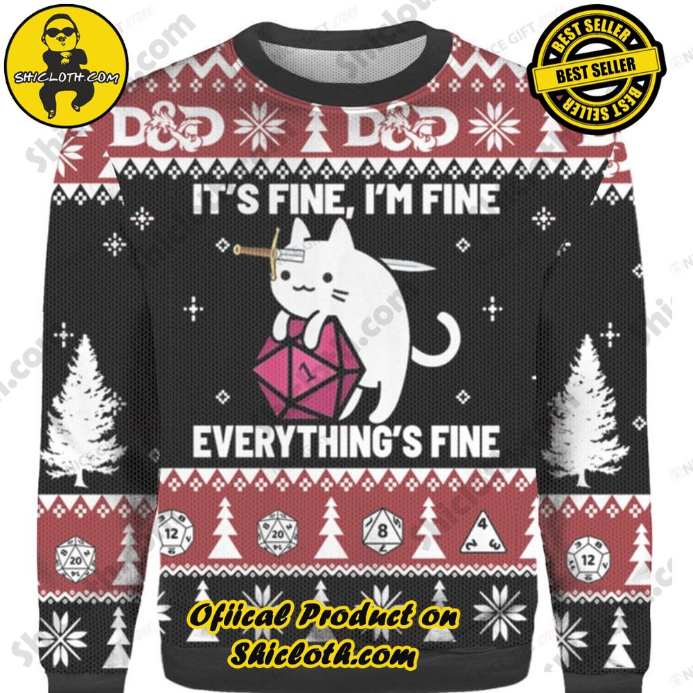 D&D It is Fine I am Fine Everything is Fine Christmas Ugly Sweater