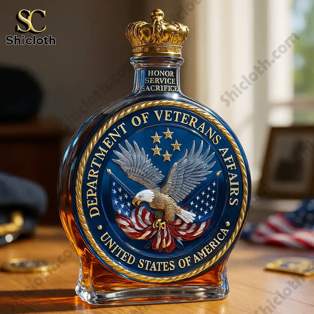 The true joy of this collection lies in the freedom of choice and the connection to the world of premium spirits. With four distinctive cap styles available, you can choose the one that best suits your personality or the style of your home bar. The motto “Honor, Service, Sacrifice” isn’t just text; it’s the core message and the most powerful reason to own one. By acquiring this piece, you are celebrating the profound values of the VA. Whether you prefer the sleekness of the Jack Daniel’s style or the royalty of the Crown Royal style, each bottle holds the same powerful message.