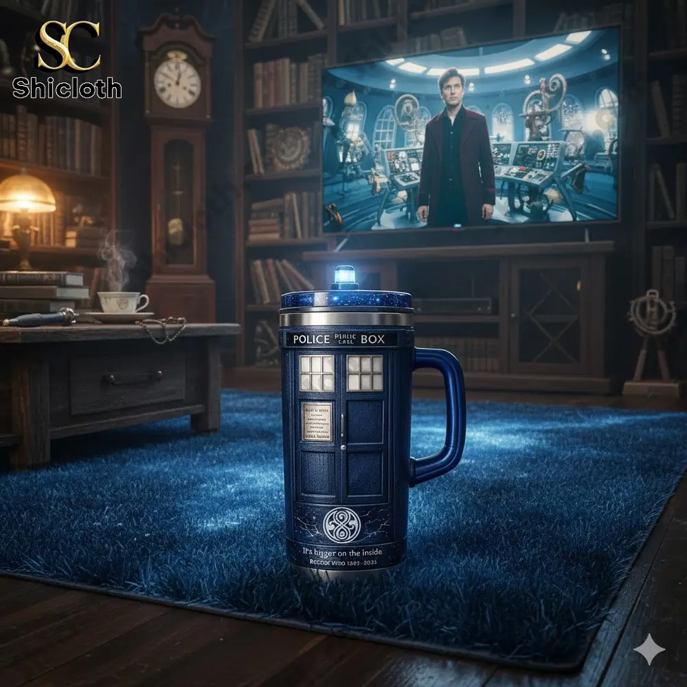 The Doctor Who Time Traveler’s Edition Tumbler Cup is a premium, double-walled stainless steel vessel designed to keep your drinks at the perfect temperature while celebrating six decades of time-traveling adventures. Featuring a deep TARDIS blue finish with intricate Gallifreyan symbols and the iconic “Police Public Call Box” signage, this tumbler is the ultimate companion for fans who want their coffee hot or their water ice-cold from the morning until the end of time.