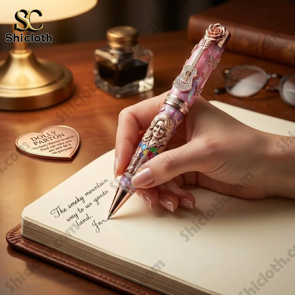 The Dolly Parton “The Smoky Mountain Songbird” Quote Collector Pen is a stunning tribute to the Queen of Country, blending high-end craftsmanship with the heartwarming spirit of Dolly herself. This exquisite writing instrument features a vibrant pink marbled resin barrel adorned with intricate 3D rose gold accents, including a shimmering jeweled guitar, delicate butterflies, and a signature rose atop the cap. A detailed portrait of Dolly in her iconic colorful patchwork style sits near the grip, making it a true masterpiece for fans and collectors who appreciate both functional art and the legendary legacy of the Smoky Mountain Songbird.