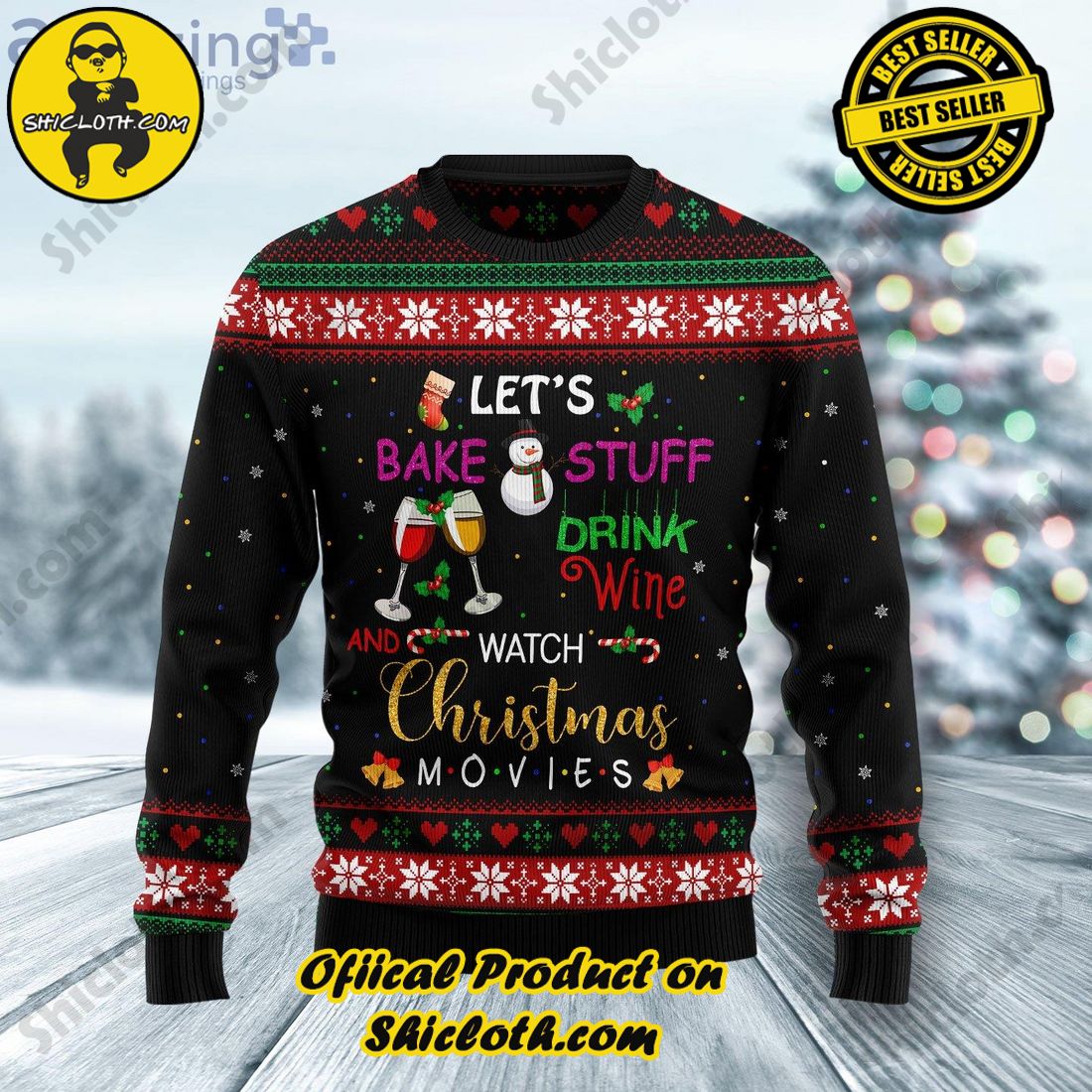 Drink Wine And Watch Christmas Movies Ugly Christmas Sweater