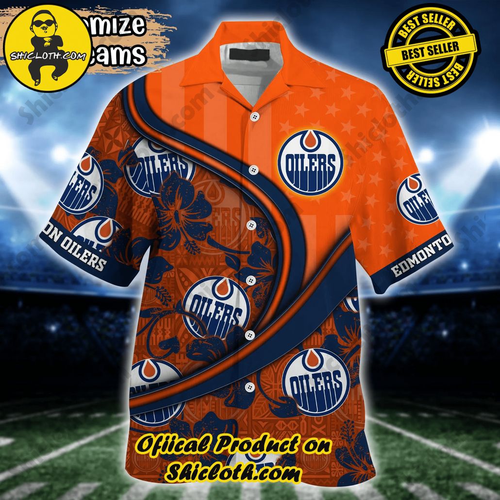 Introducing our exclusive Edmonton Oilers NHL Us Flag Hawaiian Shirt Custom Summer Aloha Shirt, meticulously crafted in the heart of the United States. This vibrant shirt effortlessly blends the iconic Oilers logo with the patriotic US flag, creating a captivating statement piece that pays homage to both your favorite team and your country. With its lightweight, breathable material, you’ll stay cool and comfortable even on the warmest summer days. Customize it with your name and number for a truly unique touch. Our commitment to quality ensures that this shirt will withstand the test of time, making it a cherished keepsake for years to come. Show off your Oilers pride and patriotism in style with this limited-edition Hawaiian shirt, available for worldwide shipping.