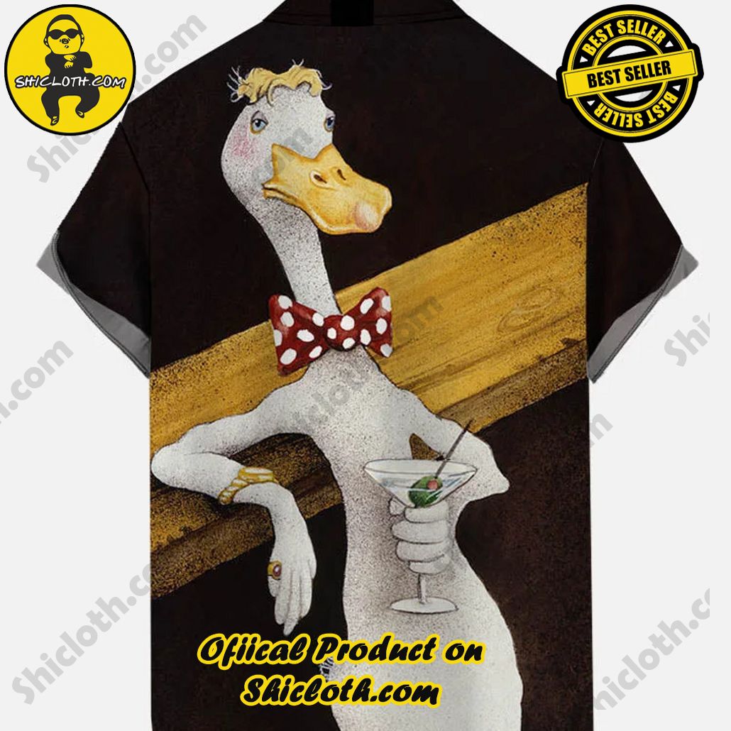Elegant Blonde Mr. Duck And Martini Glasses Printing Short Sleeve Shirt