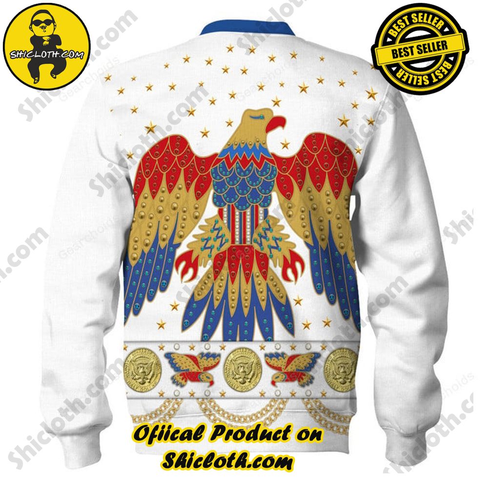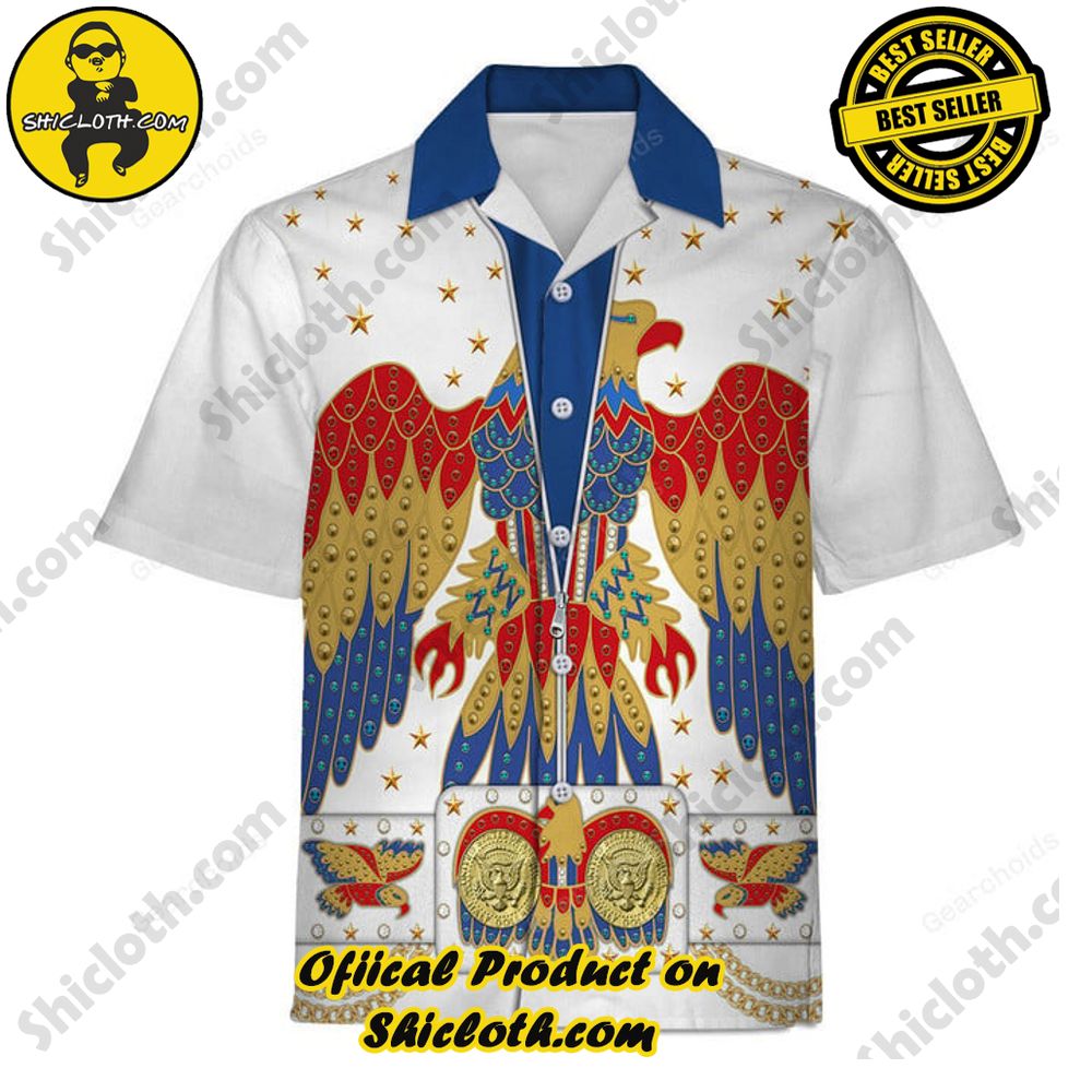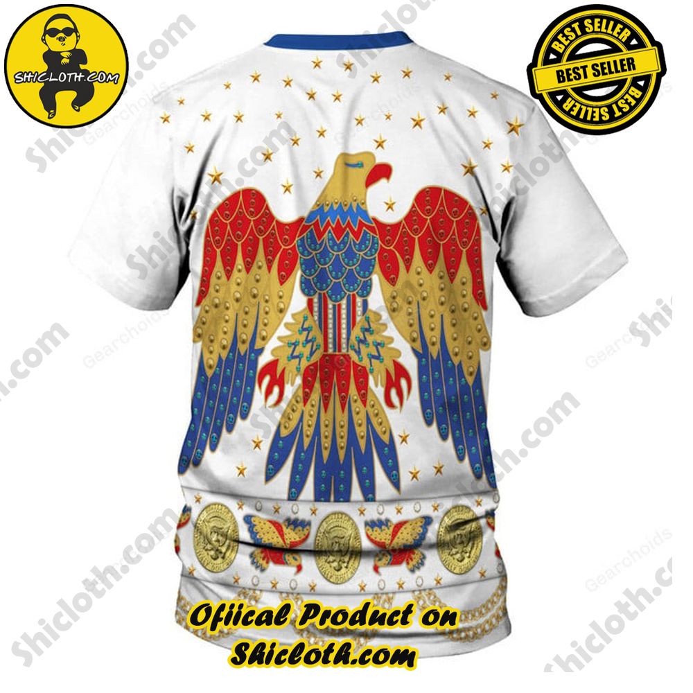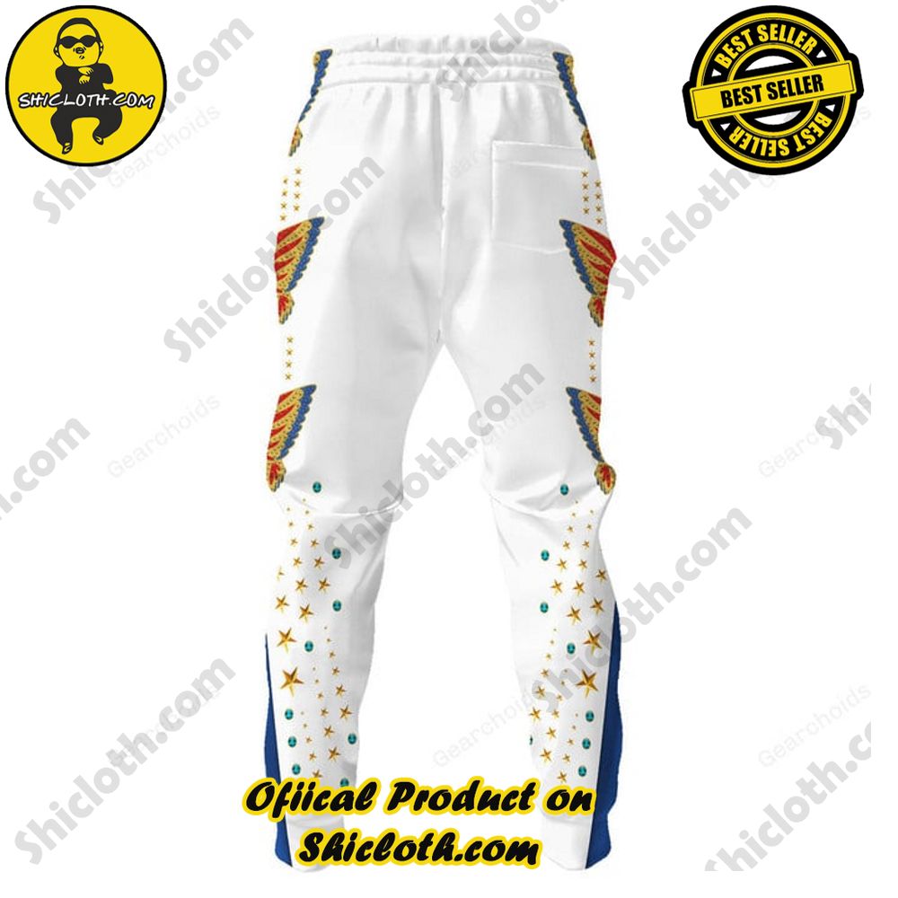 Crafted with precision, this hoodie sweatshirt, t-shirt, and sweatpants set features the iconic Elvis EAGLE costume design, paying homage to his legendary stage presence and electrifying performances. The vibrant colors and intricate details replicate the legendary outfit worn by Elvis, allowing you to channel his charisma and style whenever you wear it.
