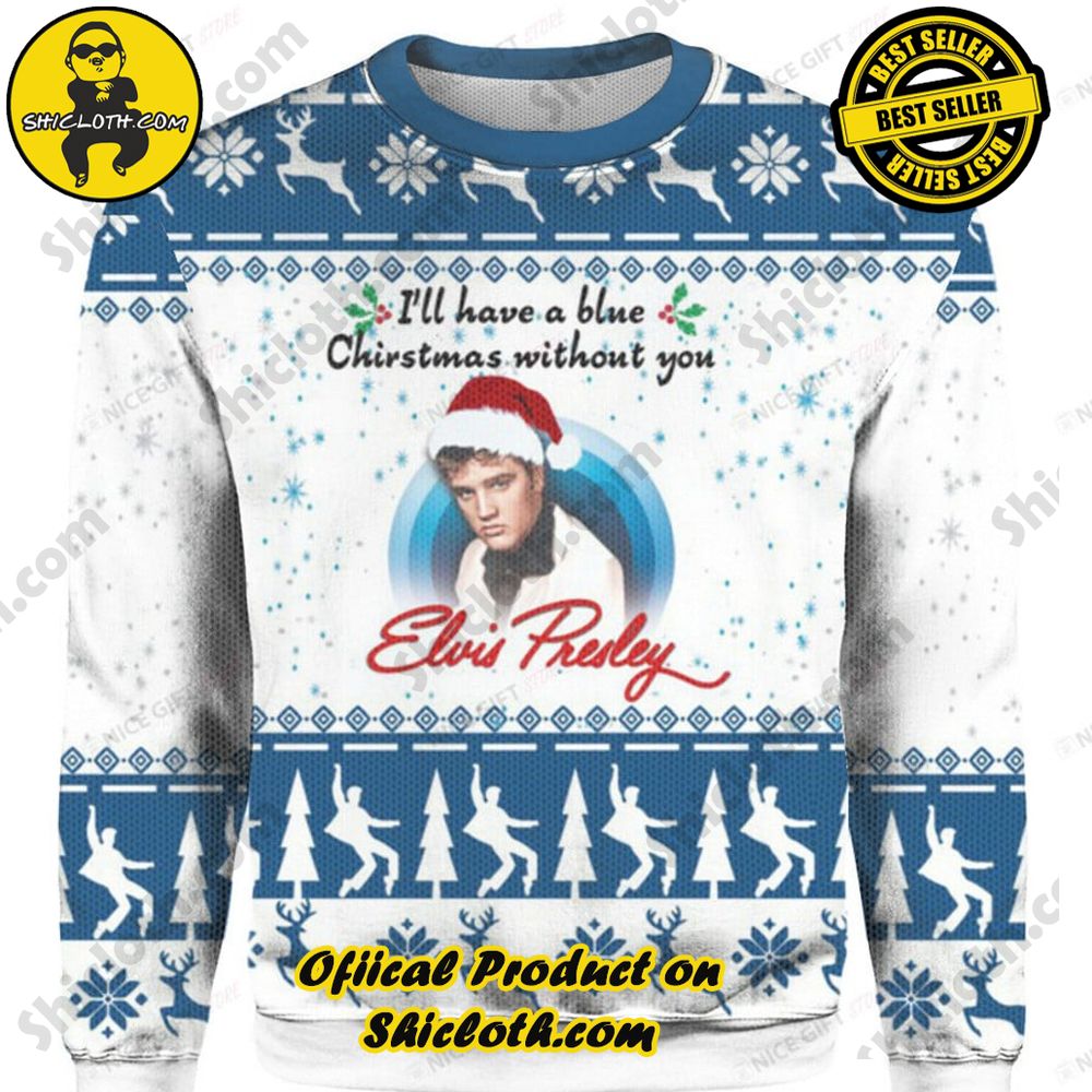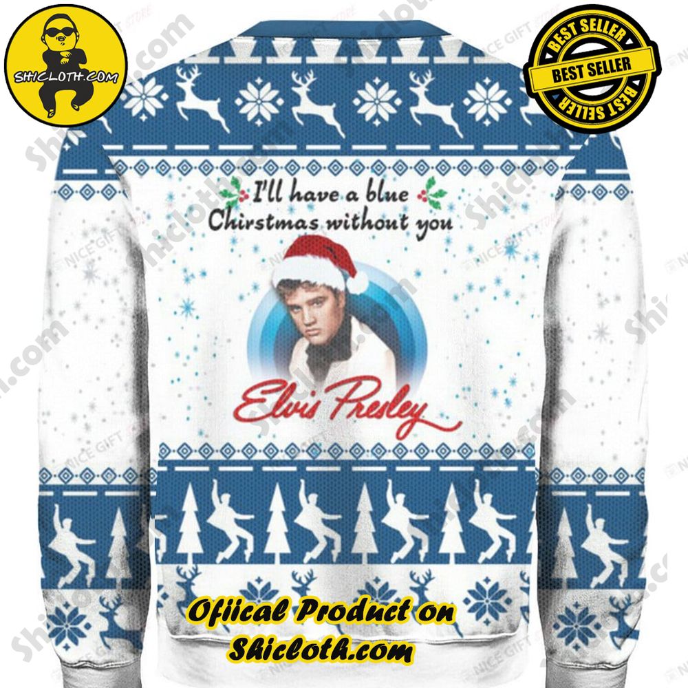 Elvis Presley I will Have A Blue Christmas Without You Christmas Ugly Sweater Version 2