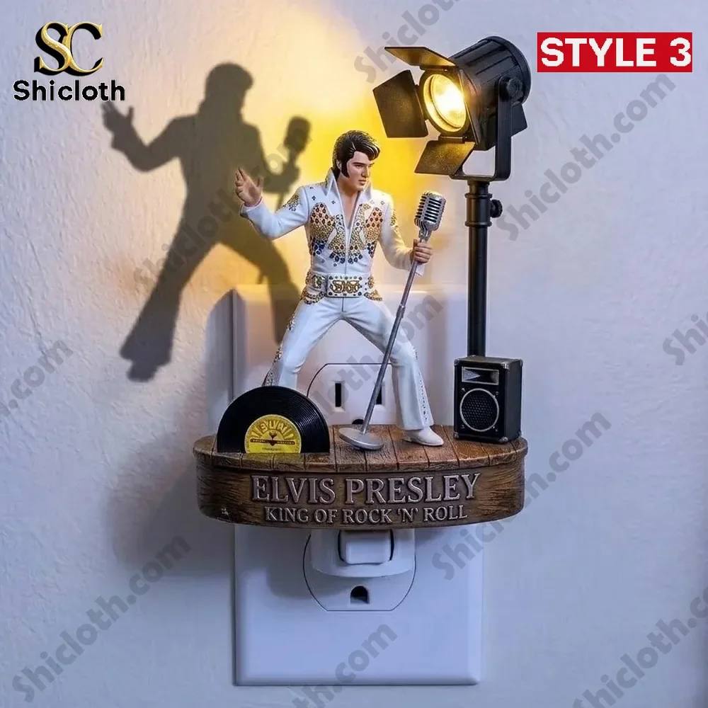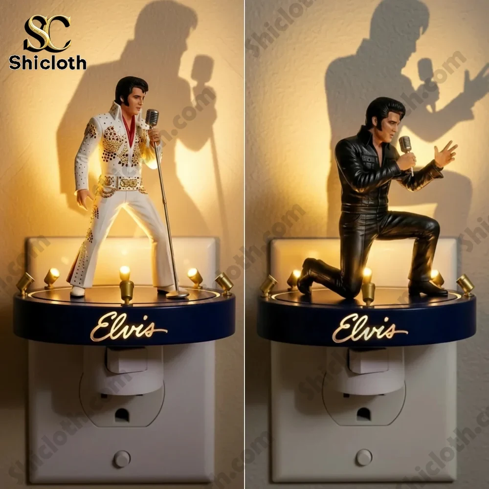 If you are looking for a unique piece of memorabilia that combines vintage Vegas vibes with practical home lighting, the Elvis Presley King Of Rock ‘n’ Roll Night Light is an ideal choice. This collection offers three distinct styles featuring the King in his most iconic poses, from the rugged 1968 Comeback Special black leather look to the legendary white embellished jumpsuit of his later residency years. Each unit is designed to plug directly into a standard wall outlet, casting a dramatic, oversized silhouette of Elvis against your wall to create a mini-concert atmosphere in any room.