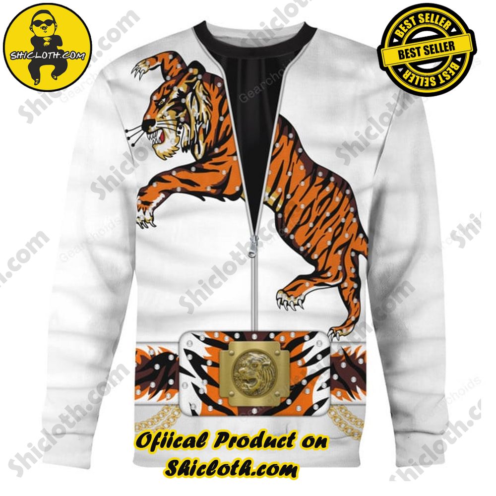 Introducing the Elvis Presley Tiger Costume Collection, the ultimate embodiment of style and nostalgia. Perfect for fans of the King of Rock ‘n’ Roll, this collection combines comfort and vintage flair to create a truly iconic wardrobe. Whether you’re looking for a hoodie, sweatshirt, t-shirt, or sweatpants, our extensive range has got you covered! Crafted with the highest quality materials, these garments provide unparalleled comfort that lasts. And the best part? Our products are the cheapest and best in the market! We believe in offering affordable prices without compromising on quality, making it easier than ever for you to embrace your love for Elvis in style. What’s more, the more you buy, the bigger the discount, allowing you to curate your dream Elvis-inspired ensemble without breaking the bank.