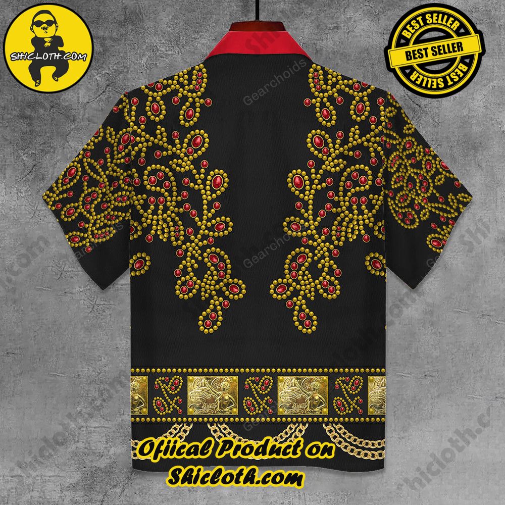 Elvis Spanish Flower – Black With Red Stones Unisex Hawaii Shirt