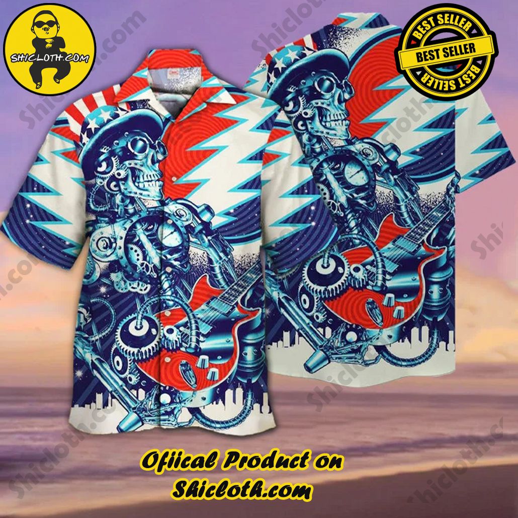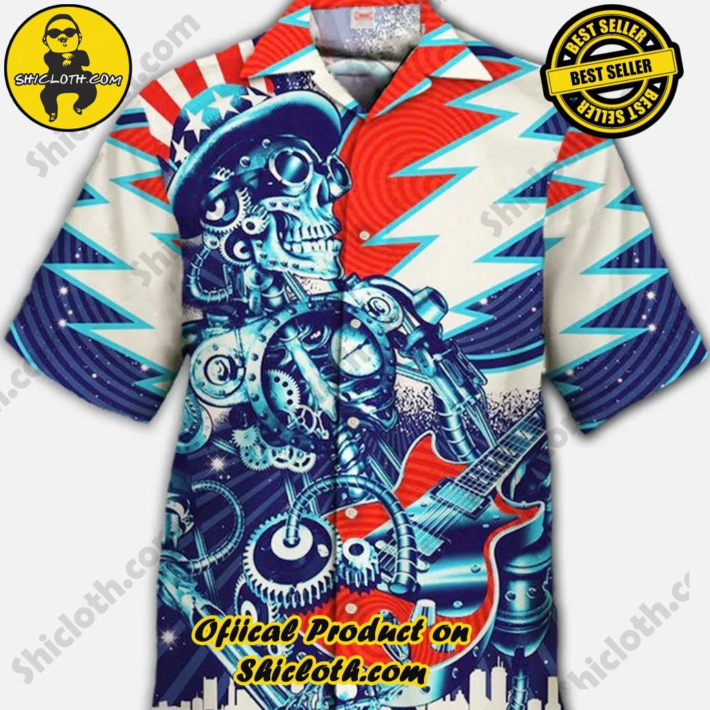 Best Places to Buy Eye-Catching Heavy Metal Retro Graffiti American Skull Guitar And Lightning Printing Cuban Collar Hawaiian Short Sleeve Shirt Online: