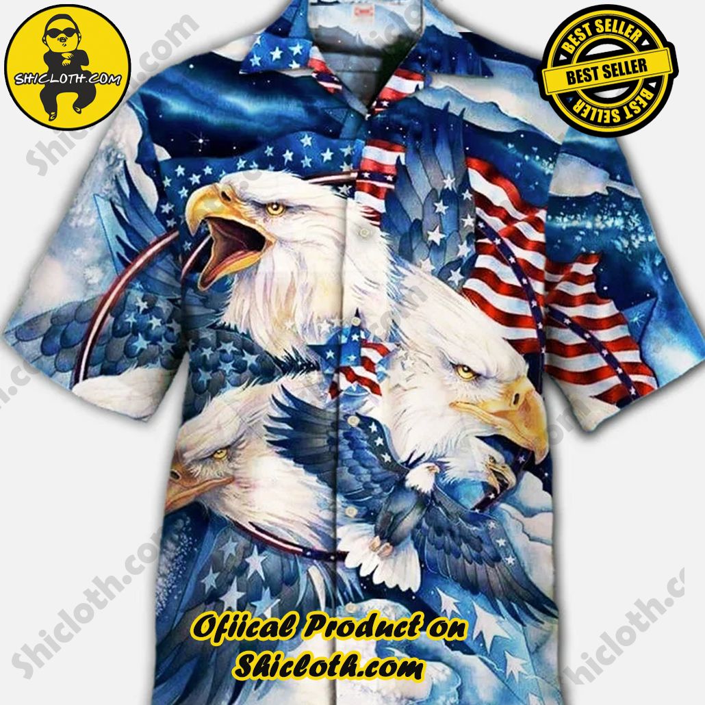 Eye-Catching Vintage 4th Of July American Flag With Eagle Flash Printing Cuban Collar Hawaiian Short Sleeve Shirt