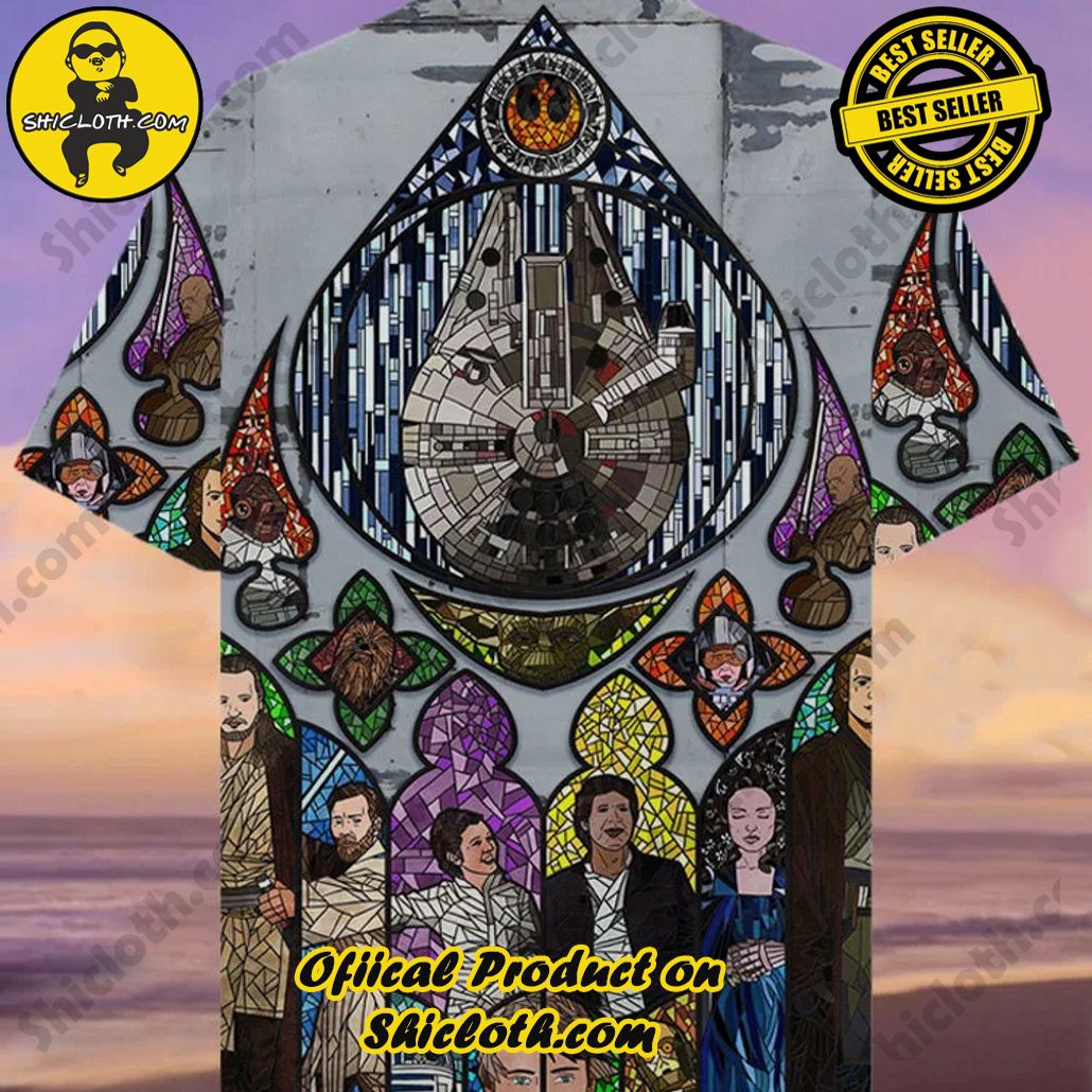 Best Places to Buy Eye-Catching Vintage Stained Glass Painted Spaceship And Portraits of Space Warriors Printing Cuban Collar Hawaiian Short Sleeve Shirt Online: