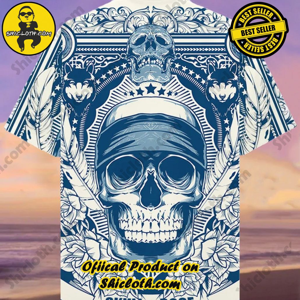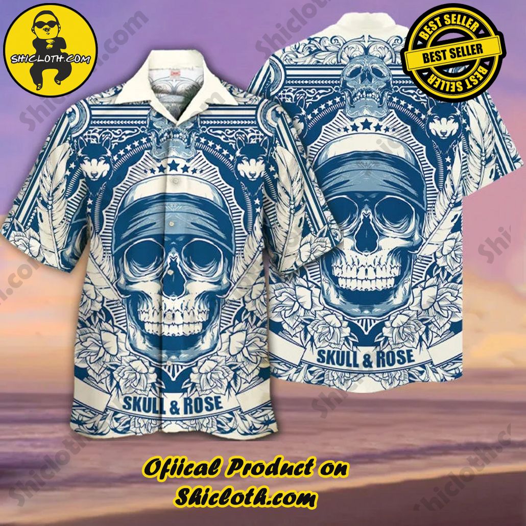 Eye-Catching Vintage Tattoo Skull Art SKULL AND ROSE Printing Cuban Collar Hawaiian Short Sleeve Shirt