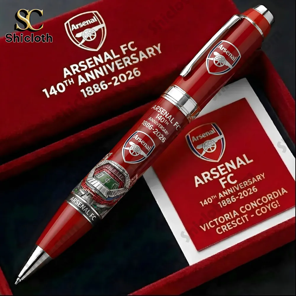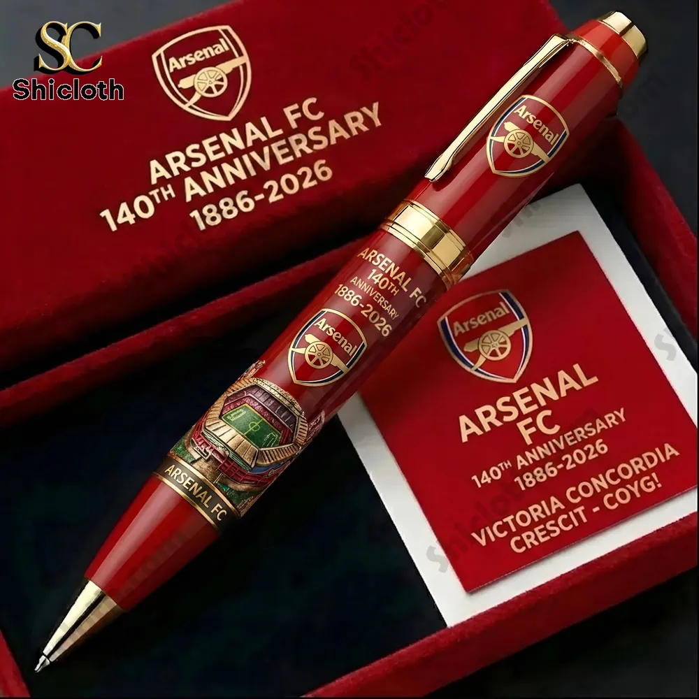 The Arsenal FC 140th Anniversary Edition Ballpoint Pen is a premium collectible that celebrates the club’s rich history from 1886 to 2026. This elegant writing instrument features a vibrant red finish paired with sophisticated polished alloy accents on the clip and tip. The barrel is intricately decorated with the iconic Arsenal crest, the “Victoria Concordia Crescit” motto, and a detailed 3D-style graphic of the Emirates Stadium. Whether you are signing important documents or adding to a sports memorabilia collection, this pen combines functional excellence with the “Pride of London” spirit.