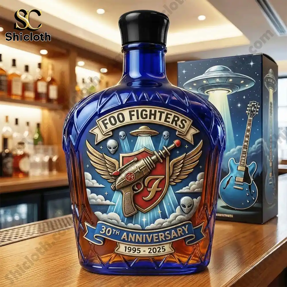 Rock on, music lovers! If you are a die-hard fan of Dave Grohl and the gang, the Foo Fighters 30Th Anniversary Everlong Whiskey Bottle is the ultimate tribute to three decades of legendary rock. This custom-shaped decanter is a masterpiece of fan memorabilia, blending a sleek blue-tinted glass body with a vibrant, 3-D textured emblem that celebrates the band’s sci-fi roots and iconic “Everlong” era. Whether you are pouring a glass of bourbon or displaying it as the centerpiece of your home bar, this bottle is designed to be the “Best of You” in any collection.