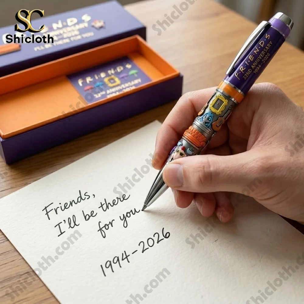 This pen is built with a stainless steel body, providing the perfect weight distribution for a smooth, effortless writing experience that minimizes hand strain during long meetings or study sessions. The clip, button, and tip are made from polished alloy, offering a brilliant shine and superior resistance to oxidation. The top of the pen proudly displays the Friends logo alongside the commemorative dates “1994-2026,” making it a durable and timeless keepsake for any collector.