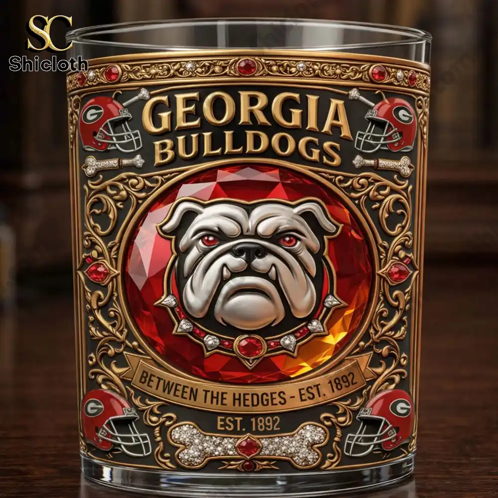 The Georgia Bulldogs Between The Hedges Est. 1892 Whiskey Glass is the ultimate tribute for fans who bleed red and black. Combining high-end aesthetics with team spirit, this glass features a heavy-set design adorned with a striking bulldog mascot centered within a ruby-red, gem-like background. Whether you are celebrating a big win or looking for a centerpiece for your home bar, this glass brings the prestige of Sanford Stadium right to your hand.