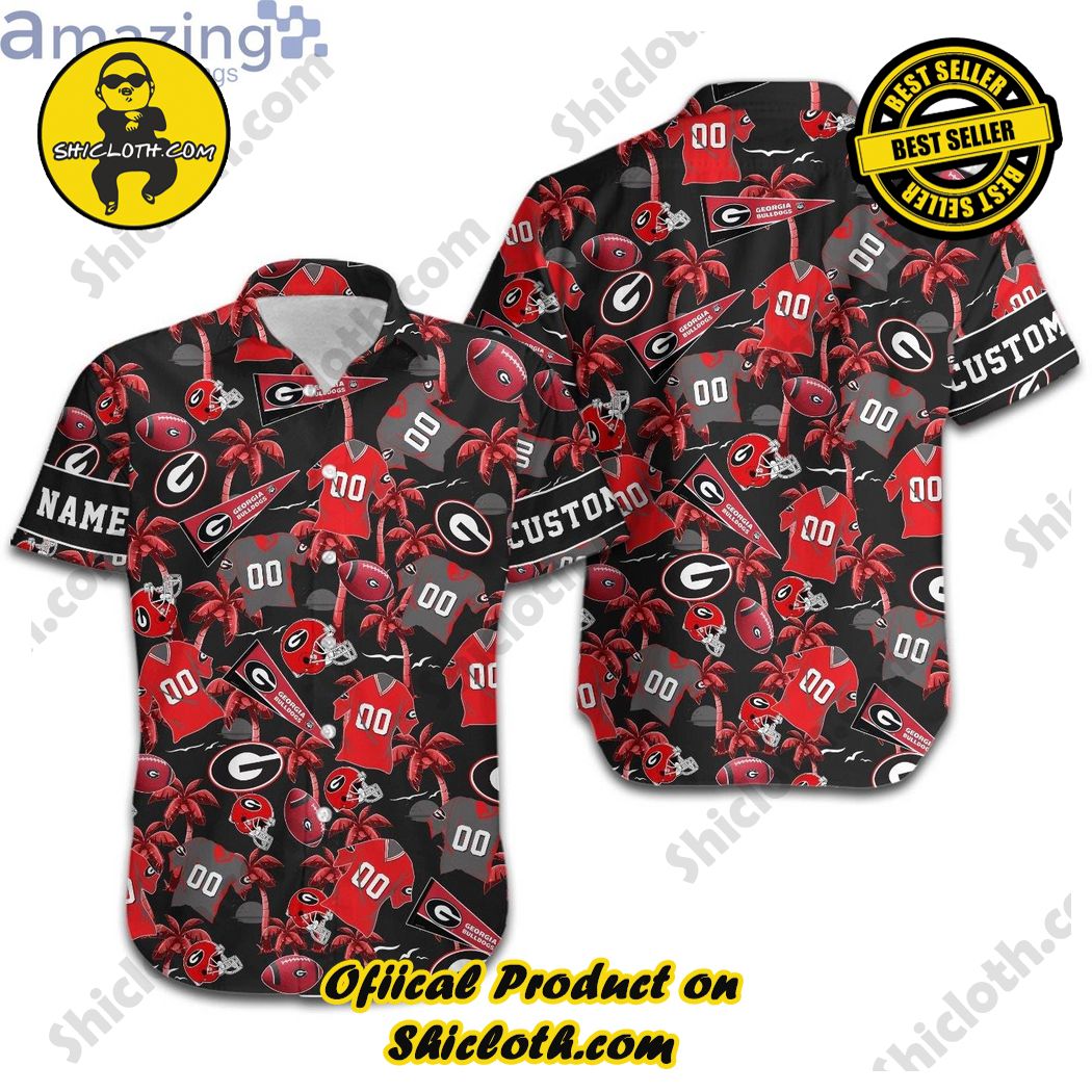 Georgia Bulldogs Palm Tree Custom Name & Number Personalized Hawaiian Shirt