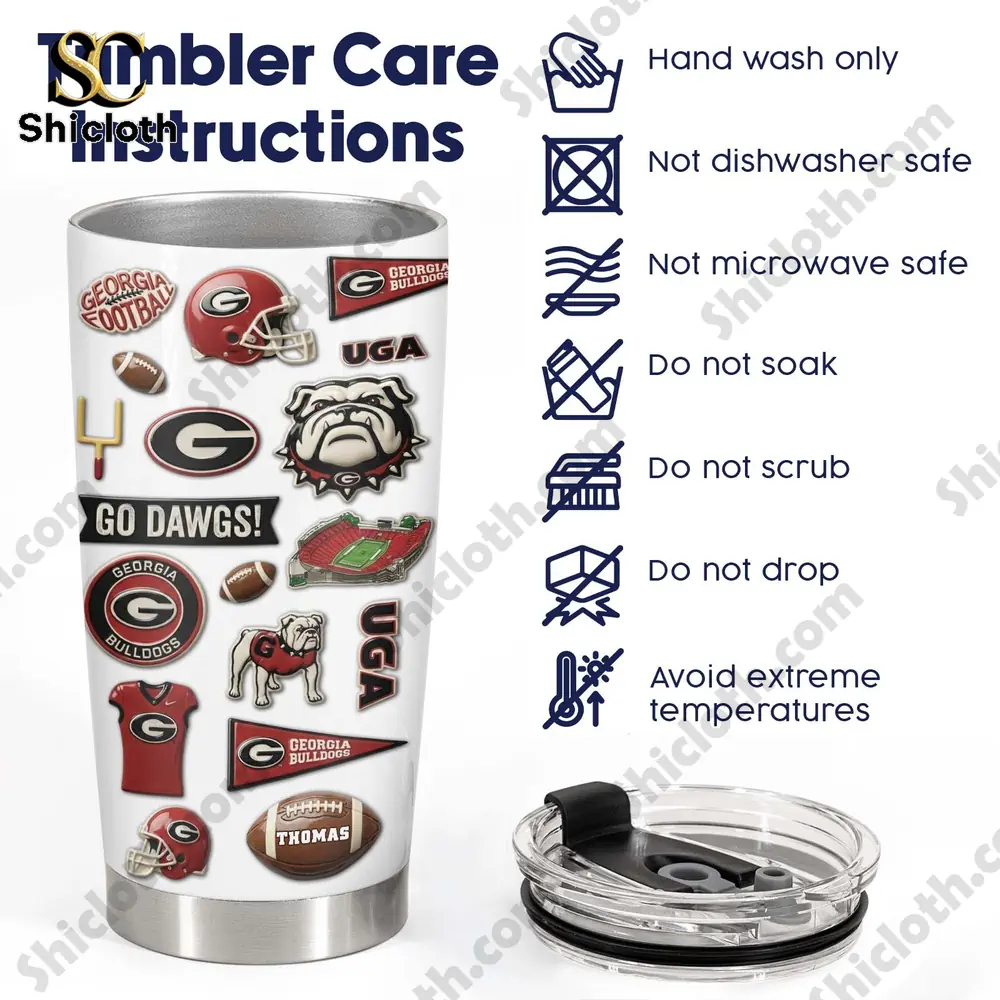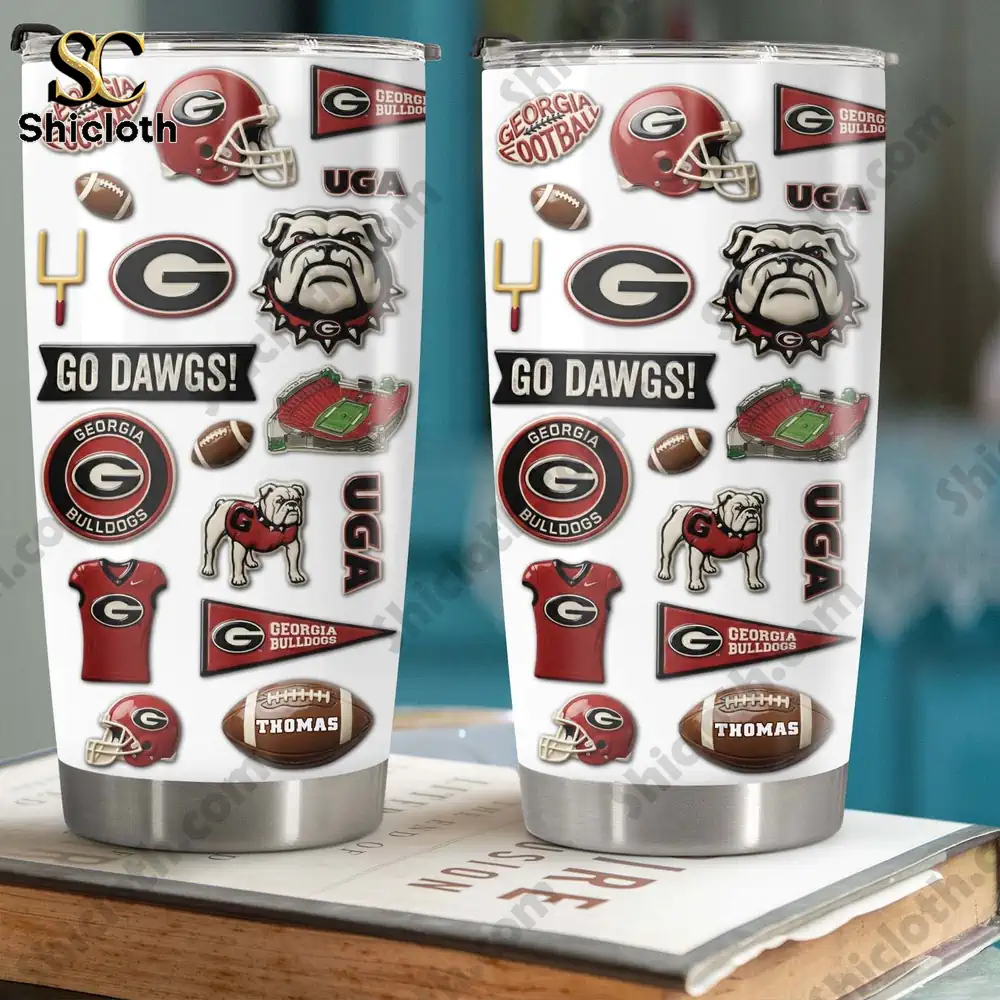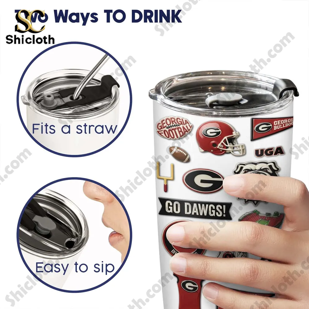 The Georgia Bulldogs Tumbler Cup is a high-performance, fan-focused beverage container designed to showcase team spirit while providing exceptional temperature retention. Featuring a vibrant collage of team icons like the classic “G” logo, Uga the bulldog mascot, and “Go Dawgs!” banners, this tumbler is built for durability and style whether you are at the stadium or on the go.