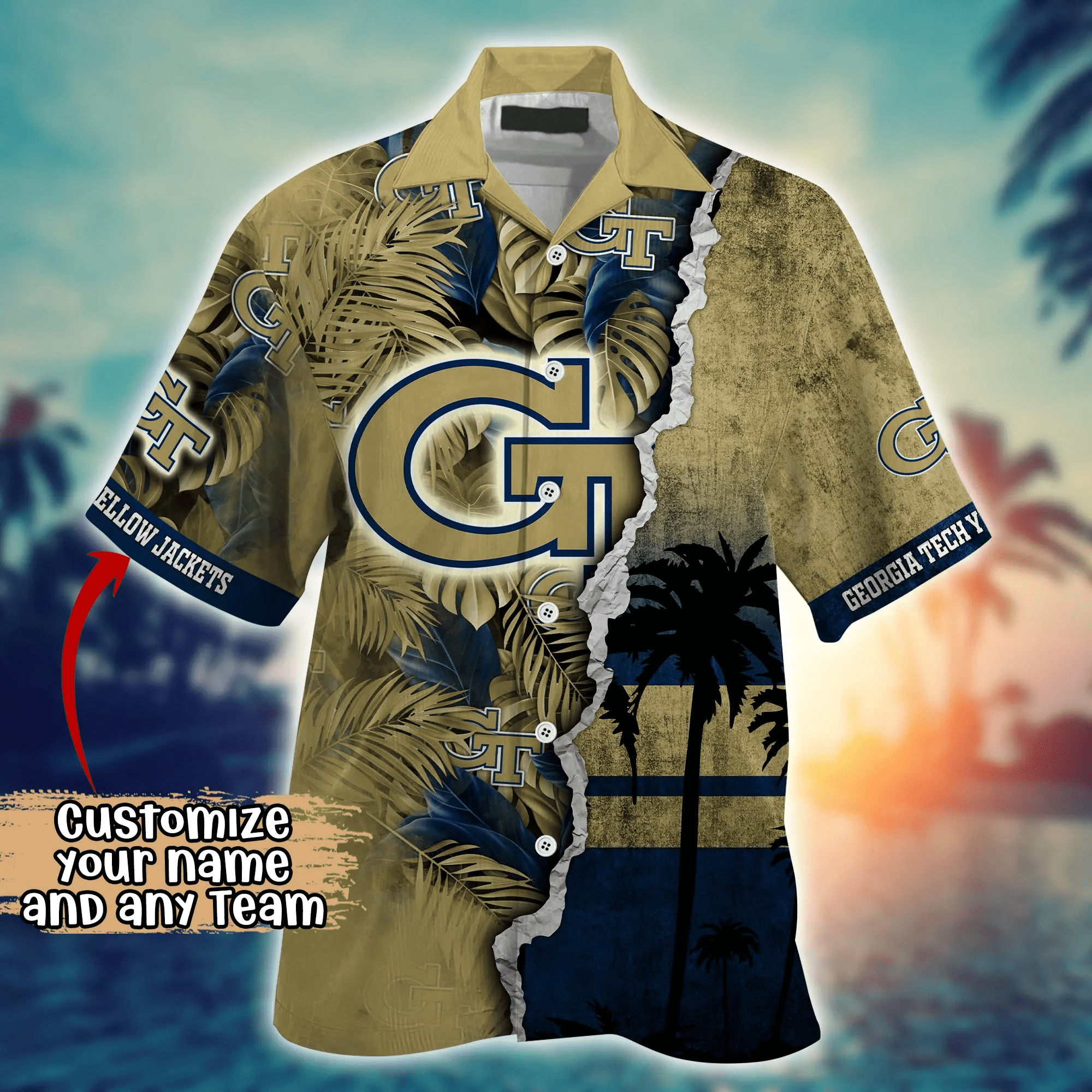 Information of Georgia Tech Yellow Jackets NCAA Hawaiian Shirt Custom Lush Greenery Aloha Shirt: