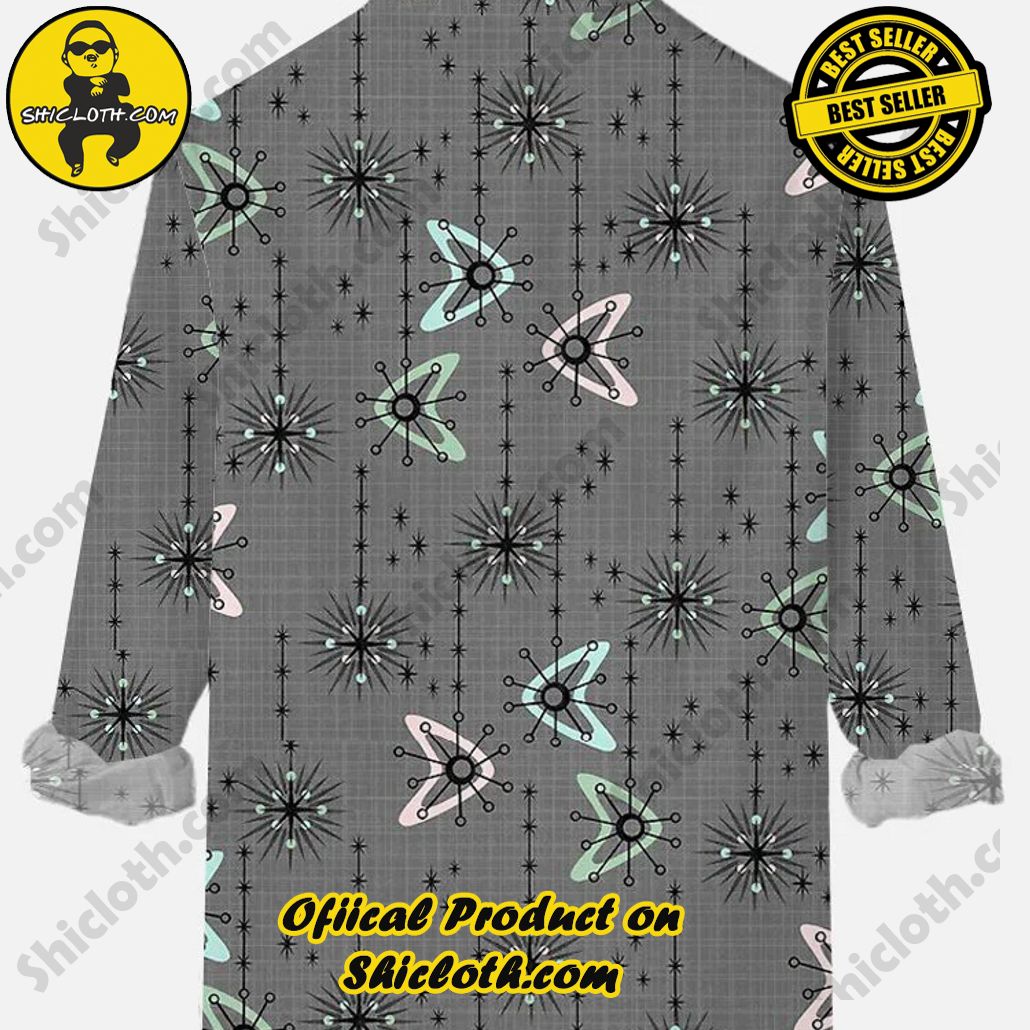 Overview of the Gray Medieval Atomic Retro Style Geometry Pattern Printing Breast Pocket Long Sleeve Shirt: