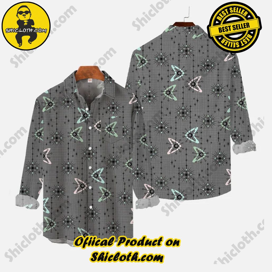 Product Information : Gray Medieval Atomic Retro Style Geometry Pattern Printing Breast Pocket Long Sleeve Shirt
