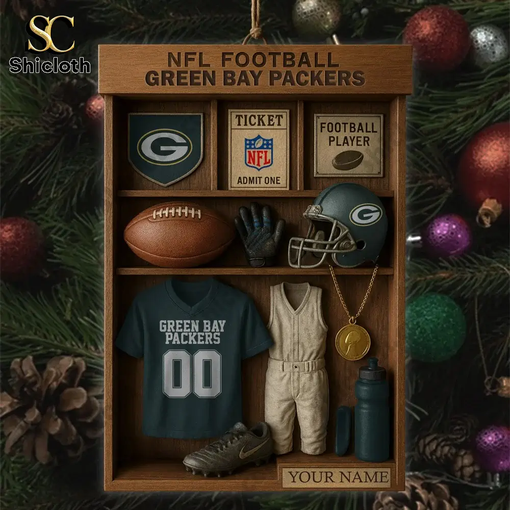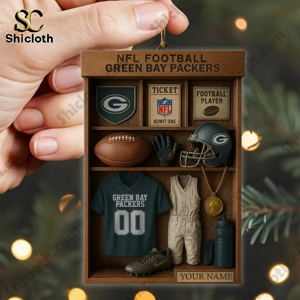 For every dedicated Green Bay Packers fan, this is the perfect piece of holiday cheer! The Green Bay Packers NFL Football Locker Customizable Hanging Ornament is more than just a decoration; it’s a miniature, personalized tribute to your favorite team. This single-sided acrylic ornament is designed to look like a classic wooden locker shelf, showcasing nine beautifully detailed, tiny replicas of essential Packers gear and memorabilia. It’s an ideal gift for Christmas, birthdays, or any special occasion for the passionate fan in your life.