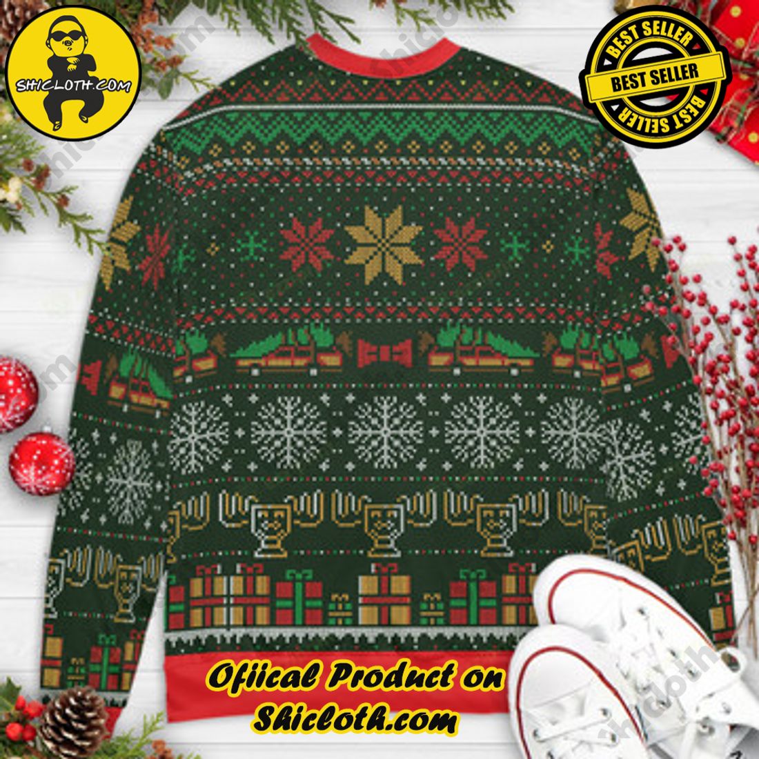 Introducing the Griswold Christmas Clark Griswold National Lampoon’s Christmas Vacation Ugly Christmas Sweaters! Celebrate the holiday season in style with these iconic sweaters that pay homage to one of the most beloved Christmas movies of all time. As the official licensed merchandise of National Lampoon’s Christmas Vacation, our sweaters are guaranteed to be a hit at any ugly sweater party or family gathering.