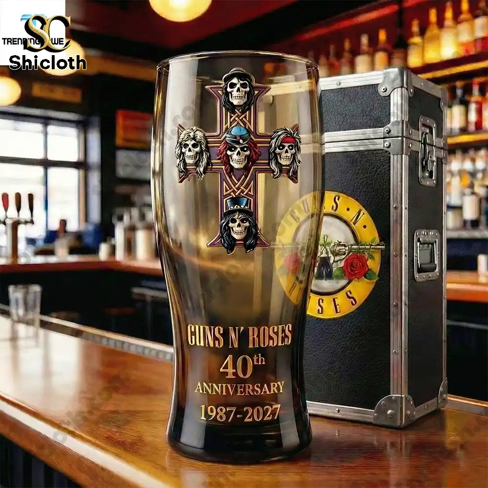 This limited-edition beer glass is the ultimate tribute to four decades of rock history, specifically designed to celebrate the Guns N’ Roses 40th Anniversary (1987-2027). Featuring the iconic Appetite for Destruction cross, this glass is more than just drinkware; it is a high-quality collectible that brings the energy of a live concert right into your home bar.
