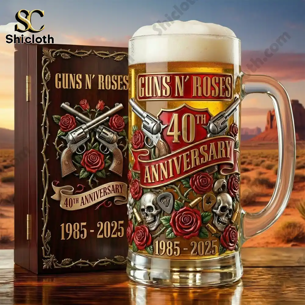 This Guns N’ Roses 40th Anniversary Appetite For Legend Sculpted Beer Glass is the ultimate tribute to four decades of rock royalty. Featuring a stunningly detailed 3D sculpted design, this glass captures the raw energy of the band’s 1985–2025 legacy, making it a must-have for any die-hard fan or collector.