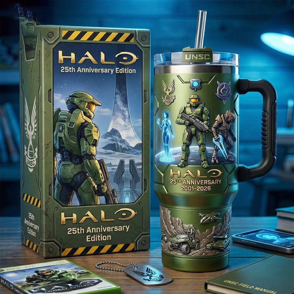 To celebrate over two decades of gaming history, the Halo Master Chief 25th Anniversary Edition Stanley Tumbler offers fans a premium way to stay hydrated while honoring the legendary Spartan-117. This collector’s set combines a heavy-duty insulated mug with a commemorative display box, featuring detailed artwork that spans the franchise’s legacy from 2001 to 2026.
