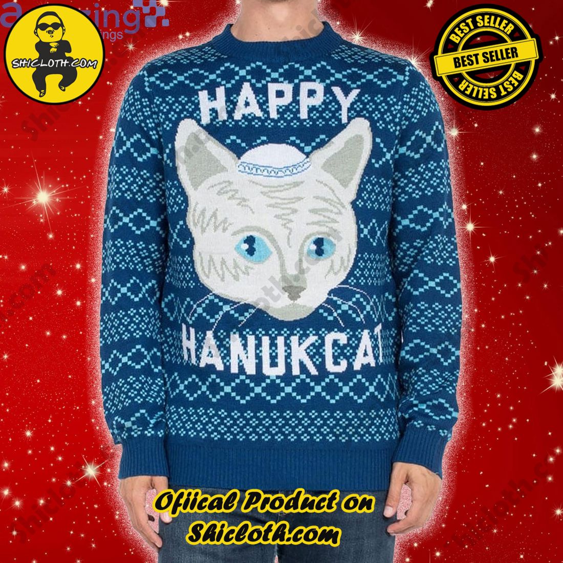 Happy Hanukcat Funny Christmas Ugly Sweater