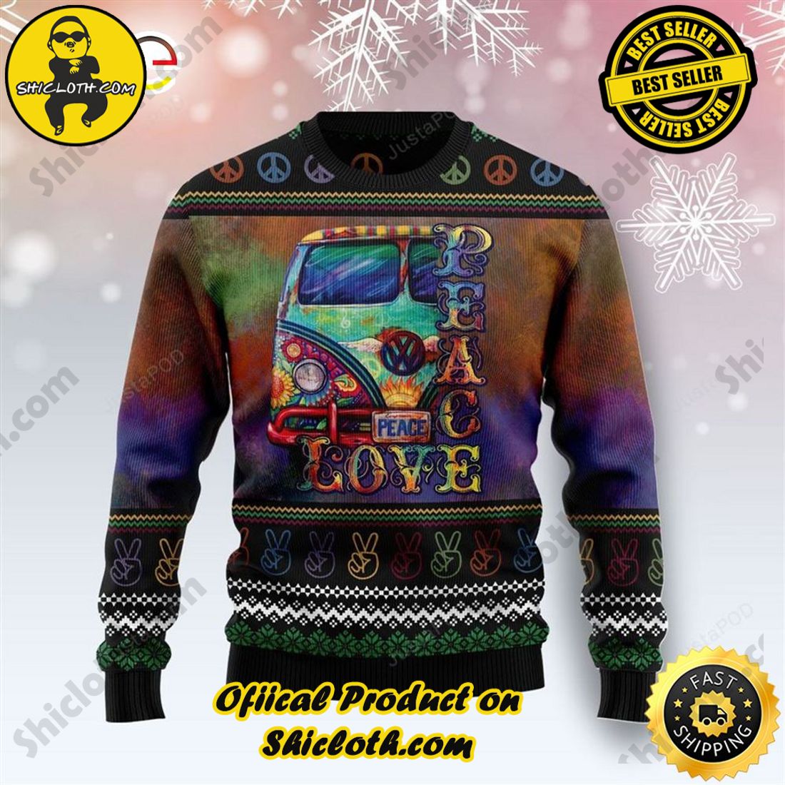 KEY FEATURES: Hippie Peace Love Vans Ugly Christmas Sweater For Men & Women Christmas Gift Sweater