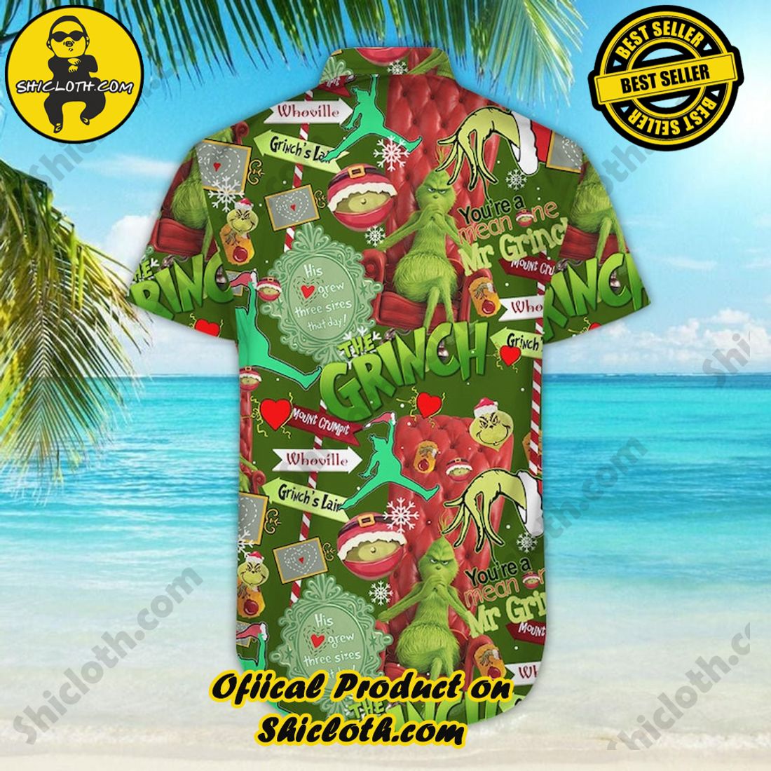 Information of Hot Grinch Mngt Vintage Aloha Hawaiian Shirt: