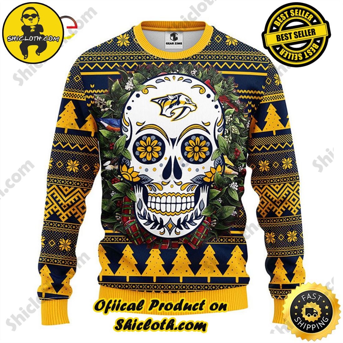 KEY FEATURES: Hot Trending NFL Nashville Predators Skull Flower Ugly Sweater