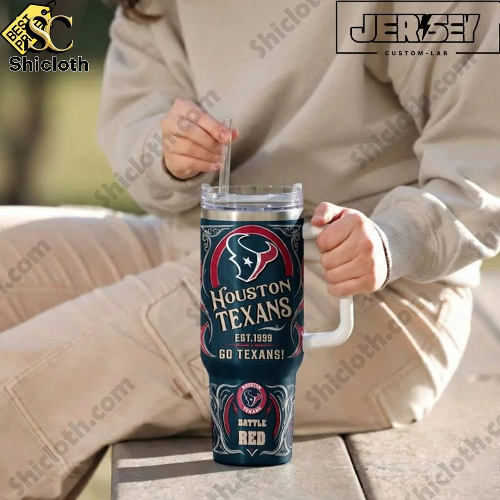 Don’t let your drinks go lukewarm while you’re cheering on the team. Click the link to grab your Houston Texans Battle Red Tumbler today and upgrade your gameday experience!