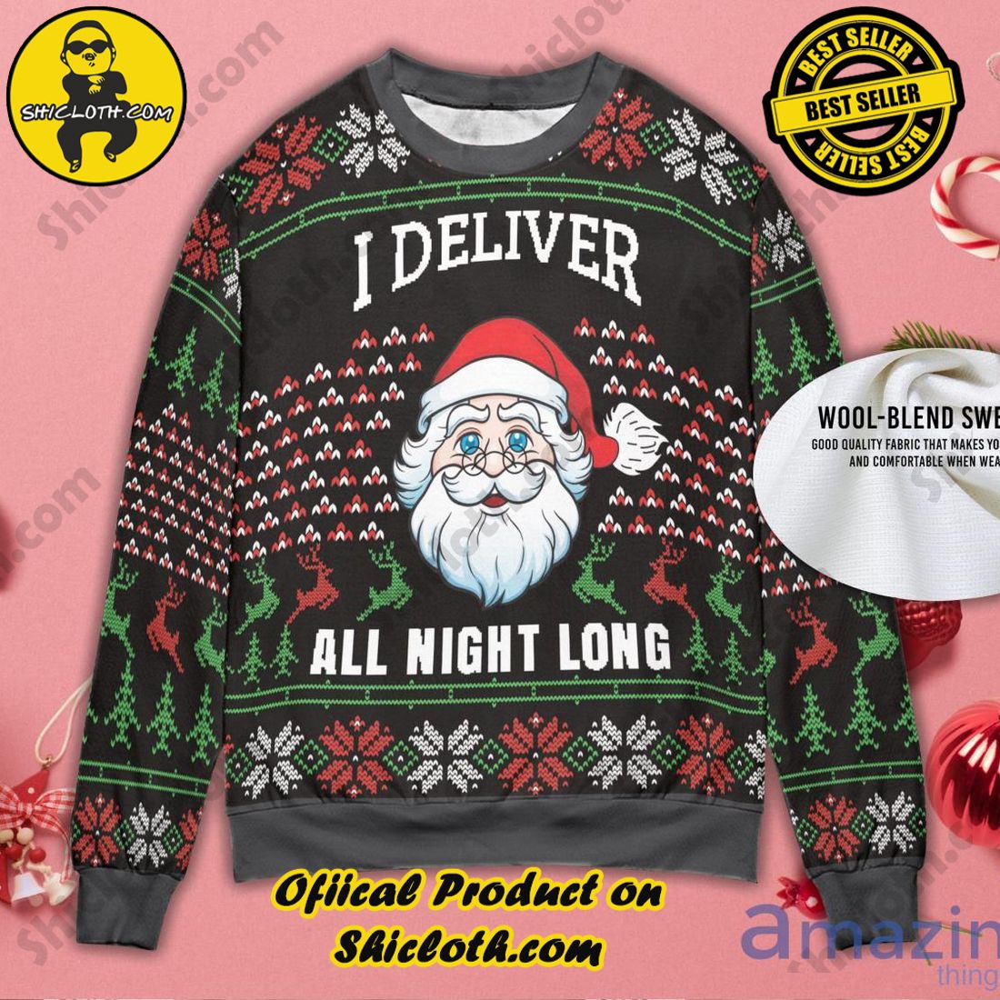 Introducing the “I Deliver All Night Long” Ugly Christmas Sweater – a truly remarkable and unique garment that is bound to become the talk of the town this holiday season! This one-of-a-kind sweater features a vibrant design that captures the festive spirit of Christmas while adding a quirky touch of humor. Made from premium quality materials, this sweater guarantees comfort and durability, ensuring it will become a staple in your wardrobe for years to come.