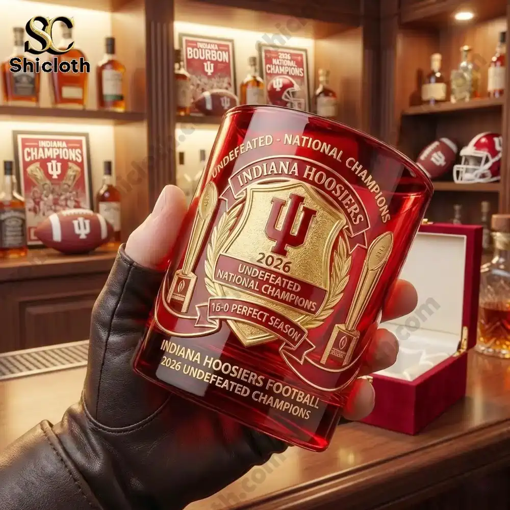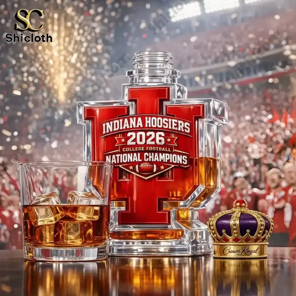 The Indiana Hoosiers 2026 College Football National Champions Whiskey Bottle And Glass Combo Set is the ultimate tribute for fans celebrating a legendary 16-0 perfect season. This exclusive set features a uniquely shaped “IU” logo bottle and a matching red-tinted glass, both adorned with high-fidelity graphics and commemorative gold detailing. It is a premium collector’s item designed for those who want to toast to victory with style and pride.
