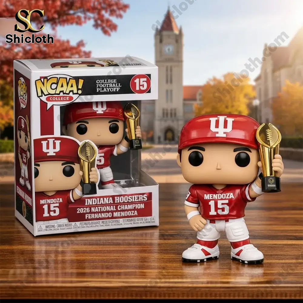 This commemorative Indiana Hoosiers 2026 National Champion Fernando Mendoza Pop Figure is a must-have collectible that captures a historic moment in college football. Designed with incredible detail, this figure features quarterback Fernando Mendoza in his signature crimson and white Indiana uniform, holding the golden championship trophy high. Whether you are a die-hard Hoosier fan or a dedicated collector, this piece brings the energy of the stadium right into your home or office.