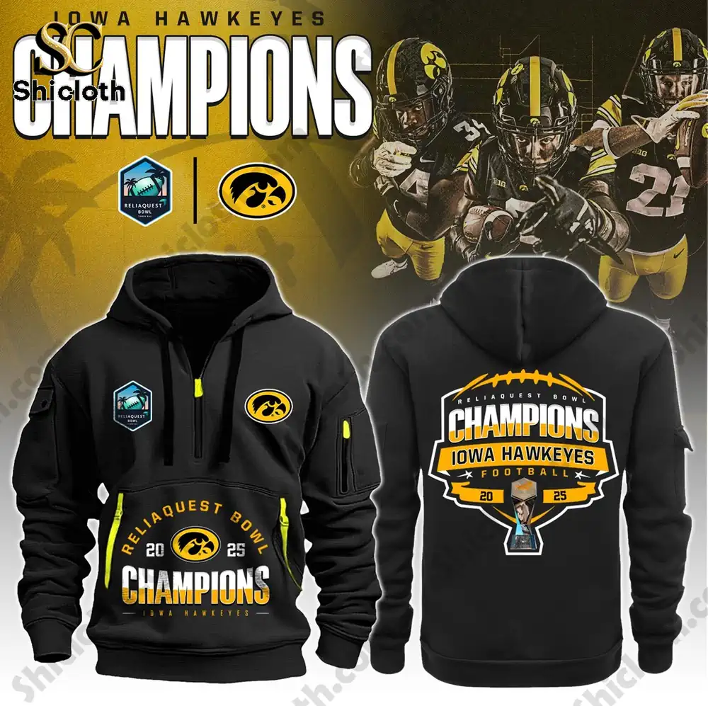 Product Information: Iowa Hawkeyes ReliaQuest Bowl Champions 2026 Hoodie Shirt